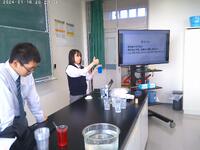 生徒は、この日のために実験と発表の準備を重ね、中学生に向けて授業を行いました。