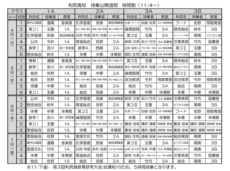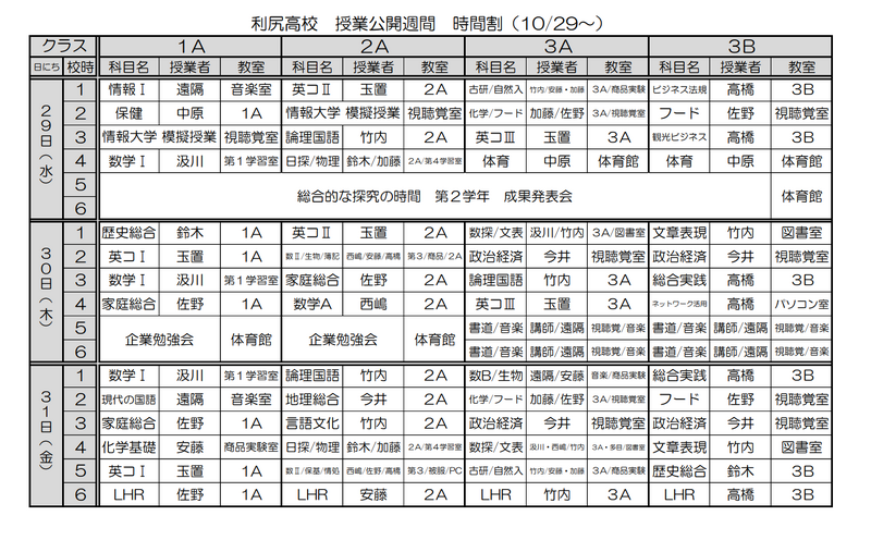 10月29日(水)から11月7日(金)まで、授業公開週間となります。