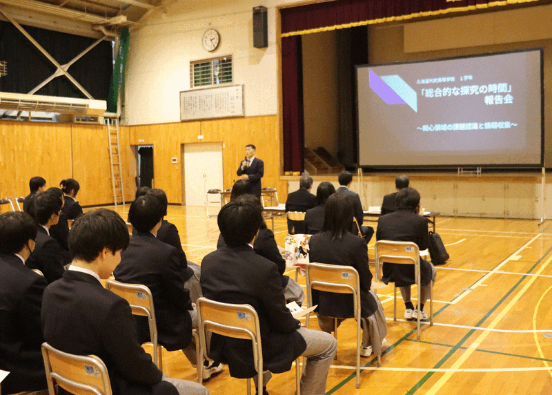 探究活動を進めてきました。利尻町の課題明確化の導入段階で、生徒らは