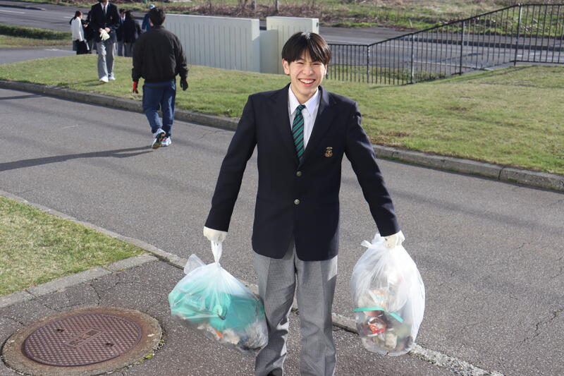 2年HR室長(天内颯斗さん) 「大小さまざまなゴミがあって驚きました。今後も地域をきれいにするために貢献していきたいです。」