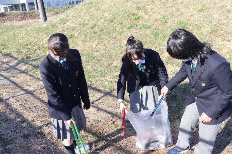 今回は例年以上に活気ある活動となりました。約20分間という限られた時間ではありましたが「自分たちの住んでいる地域を少しでもきれいにしたい」との思いで生徒たちは積極的にゴミ拾いを行いました。活動してみると予想以上のゴミの多さに驚く場面もありましたが、活動中も「ゴミ拾いが楽しい!」という場面もありました。
